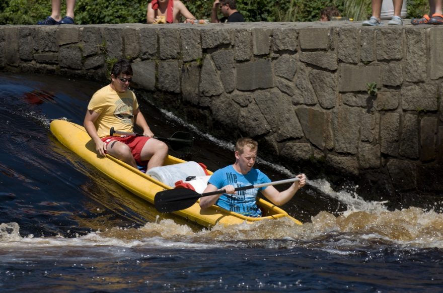 Nechci tady nabádat k tomu, abyste všechny jezy obnášeli a vyhýbali se jim obřím obloukem. Přece jenom z jezů bývají i ty nejzajímavější historky plné odřených kolen, utopených báglů, děravých lodí a dalších vodáckých taškařic, takže by bylo škoda připravit se o ně, ale… Tak jako je na našich řekách dost jezů, které se běžně splouvají nebo jsou ke splouvání i stavebně upraveny, což je v posledních letech stále častějším jevem, je tam ještě větší množství jezů, které ke splouvání (právě teď) vhodné nejsou nebo ho zcela vylučují. Nejjednodušší radou je vzít rozum do hrsti a vědět, kdy se do jezu můžu klidně pustit (samozřejmě s řádně nasazenou plovací vestou a, u dětí určitě, u dospělých nejlépe, s přilbou) a kdy ho radši uctivě obejdu. Pro jistotu si ale ta základní pravidla, jak poznat nebezpečný jez, zopakujeme.