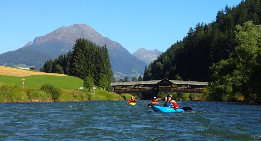V sobotu nás čeká plavba na horním úseku řeky Enns. Nasedáme v Mandlingu vpravo za mostem. Řeka je tu poměrně úzká s velkým spádem a trochu nepřehledná, ale asi po 400 metrech zleva přitéká Mandlingbach, řečiště se za soutokem rozšíří na 15 až 20 metrů a tok se postupně zmírní. Stále ale plujeme šplouchavými peřejemi s občasným velkým balvanem, za kterým je vždy pěkný vracák.