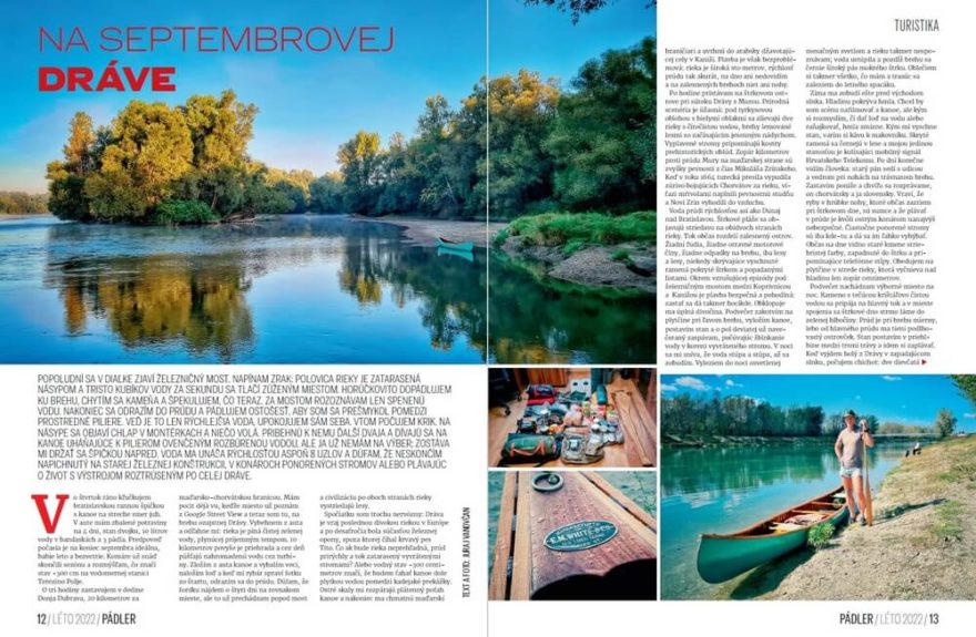 Velkou část Pádlera klasicky tvoří články o vodní turistice. Tím asi nejvýraznějším je článek od už zmíněného Juraje Vanovčana, který měl fotku i na titulní stránce časopisu. Článek se jmenuje Na septembrovej Dráve a je v něm ve slovenštině popsáno několikadenní podzimní splutí této řeky doplněné o úžasné fotografie.