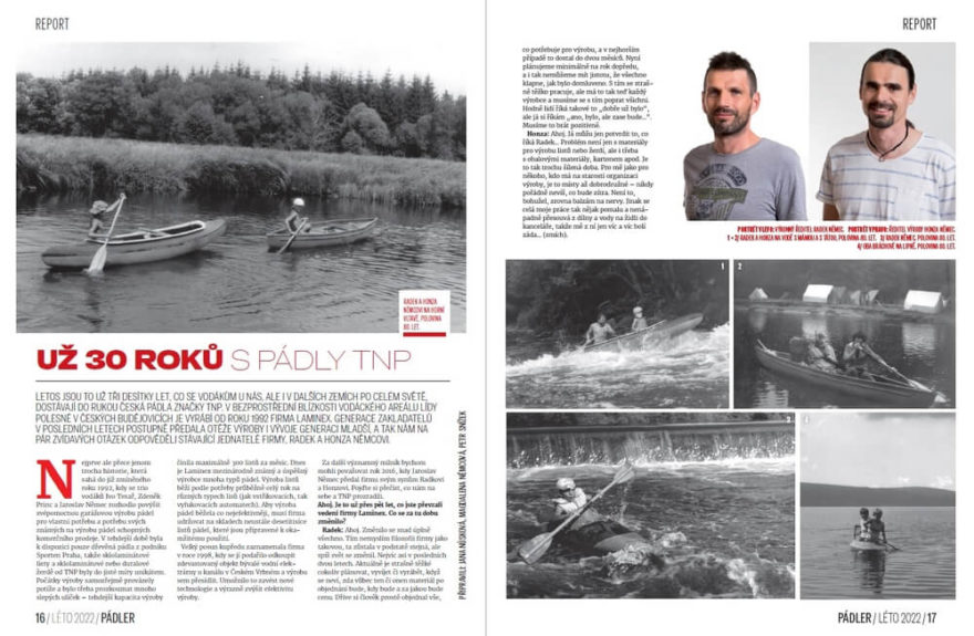 Druhý dvojrozhovor jsme vedli s Radkem a Honzou Němcovými, tedy s výkonným ředitelem a ředitelem výroby pádel TNP. Tahle značka letos slaví 30 let od svého založení, tak to byla taková pěkná příležitost se trochu podívat pod pokličku velmi úspěšné české vodácké firmy.