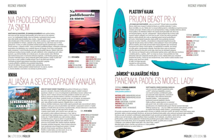 Míla Pražák připravil tradiční přehled novinek, které se udály v Asociaci vodní turistiky a sportu (AVTS). A nechybí ani recenze vodáckého vybavení. V těch jsme tentokrát proklepli kajak Prijon Beast a kajakářské pádlo Panenka Paddles Lady určené pro kajakářky a juniory. A také jsme přečetli dvě vodácké knihy – Na paddleboardu za snem od Moniky Klemšové a Aljaška a Severozápadní Kanada od Miroslava Podhorského.