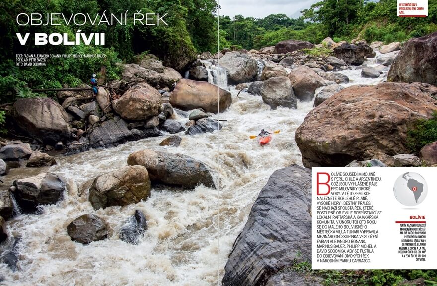 Co se vám vybaví, když se řekne expedice? Tak třeba extrémně divoké řeky uprostřed džungle, kde pořádně nikdy nikdo nebyl, horké klima, tajné skrýše drogových kartelů a tvrdá práce na vodě i na suchu, aby členové expedičního týmu zdárně dorazili do bezpečí? Tak přesně taková byla expedice do Bolívie, kterou nám popsali Fabian Alejandro Bonano, Philipp Michel a Marinus Bauer. Této expedice se účastnil i David „Vory“ Sodomka, který jako obvykle pořídil skvělé fotky. Užijte si to!
