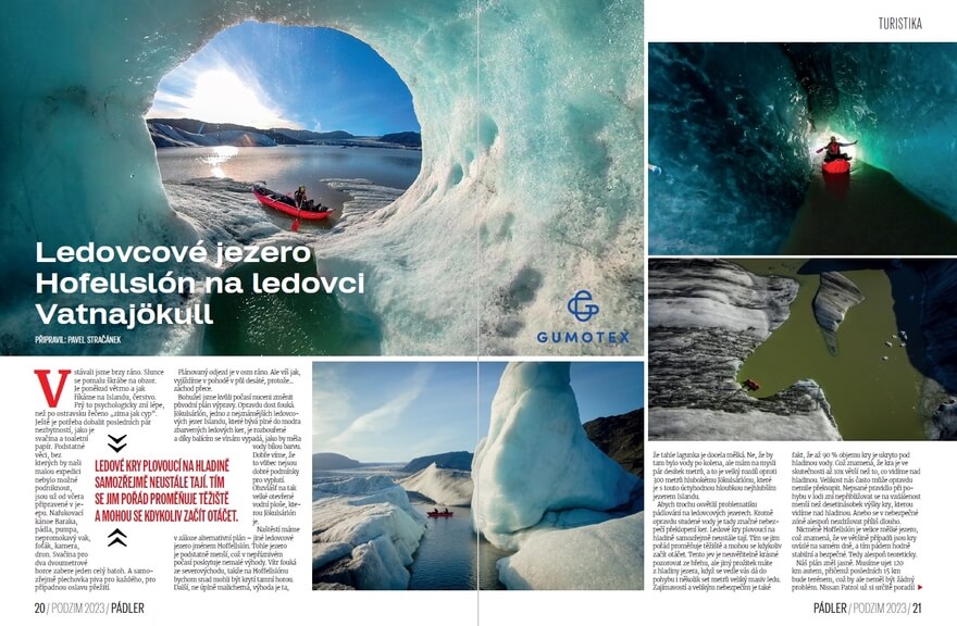 Do turistické kategorie, ale určitě i do kategorie exotiky, patří fotoreportáž od Pavla Stračánka, který se nám pokusil přiblížit putování s nafukovací kánoí po ledovcovém jezeře plném obřích ledových ker. Pokochejte se fotkami z ledových tunelů a těsných průjezdů okolo ledových velikánů zářících nejrůznějšími odstíny modré barvy. Je to naprostá fantazie.