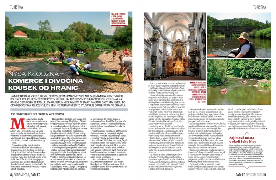 Reprezentantem vodácké turistiky v té nejčistší podobě je určitě článek od Františka Prokeše, který popisuje splouvání polské řeky Nysa Kłodzka, tekoucí jen nedaleko od našich severních hranic. Franta popisuje dvoudenní splutí a jako bývá jeho dobrým zvykem, velmi podrobně popisuje i zajímavosti v okolí řeky – od přírodních pozoruhodností až po historické památky.