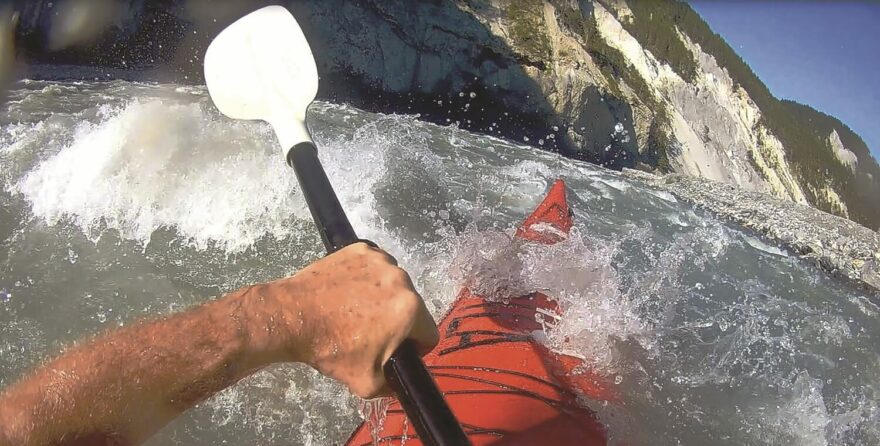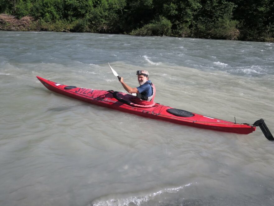 Hodně ostrý byl start na Předním Rýnu. Spousta vodáků určitě horní část této řeky zná, protože tam jsou úseky skutečně divoké vody, na kterou není můj mořský kajak úplně nejvhodnější. Taky se mi tam podařilo zaplavat a uplavalo mi pádlo, takže jsem si musel koupit nové. Od té doby jezdím s parádním skládacím expedičním pádlem, které však stálo 260 švýcarských franků. Na druhou stranu – nebýt toho plavání, tak bych ho neměl. Rhôna zase začíná několika vodopády, které jsou nesjízdné, potom to kousek jde, pak se zase musí kus po souši, ale nakonec ta řeka začne být sjízdná i pro mořský kajak.