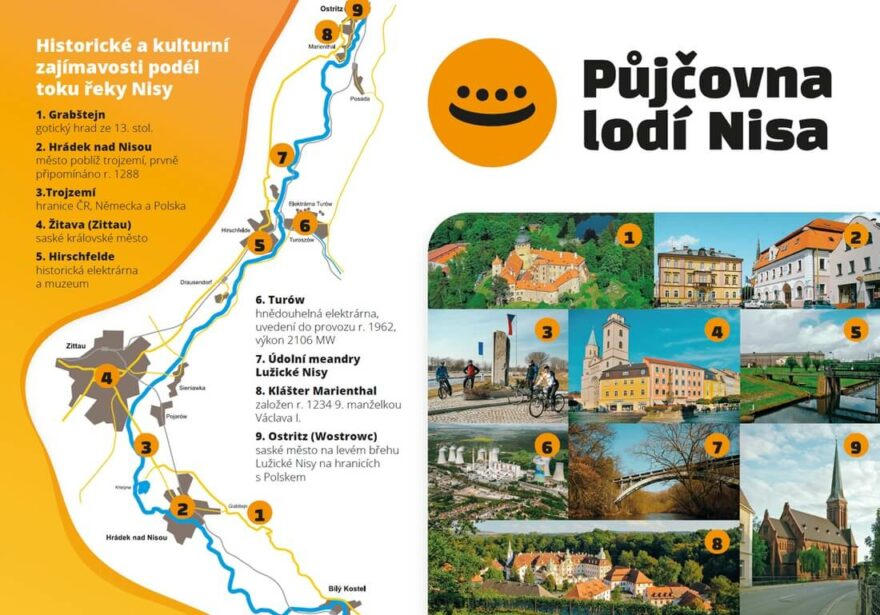 Nisa je méně navštěvovaná řeka, ale v mnohém hezčí či zajímavější než jiné české vodácké klasiky. Půjčovna lodí Nisa (www.pujcovnalodinisa.cz) zde nabízí základní produkt na území třech států – splutí od Kristýny do Marienthalu (pro méně zdatné do Hirschfelde). Opět se můžete z cíle vracet více způsoby – odvoz autem půjčovny lodí, vlakem, na vlastním kole, které vám zaměstnanec půjčovny přiveze, nebo na koloběžkách po přilehlé cyklostezce.