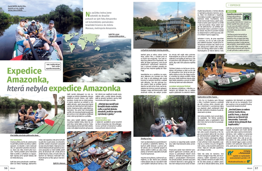 V zimě se na splutí řeky Amazonky vydala partička českých dobrodruhů. Měli poctivě natrénováno z Labe, ale bohužel neměli dostatečně natrénované vyjednávání s úřady, takže museli plán změnit a místo Amazonky se svezli jinde. I tak ale viděli krásný kus Jižní Ameriky, domorodé kmeny a mnoho dalšího.