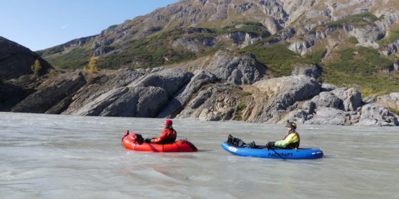 Alsek pod ledovcem Lowell je jiná řeka, velmi svižně uhání, sem tam se zvlní a dvě peřeje stojí za zmínku a prohlédnutí – jedna z nich nese hrdý název Lava North (s připomínkou slavné Lavy na Coloradu). Nakonec ji šidíme, nikomu se nechce plavat v ledové vodě. Packrafteři zkusí střed a mají to 50:50, půlka plave. Naštěstí nalézt zpět do packraftů je otázka vteřin.