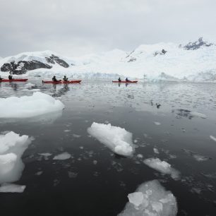 Během naší návštěvy Antarktidy se nám podařilo vyzkoušet tu mořský kajaking. Po létech, kdy jsem na mořském kajaku propádloval většinu exkluzivních světových seakajakářských destinací, se mi tak splnil sen plout mezi tučňáky, obrovskými ledovci a horami zvedajícími se přímo z moře.