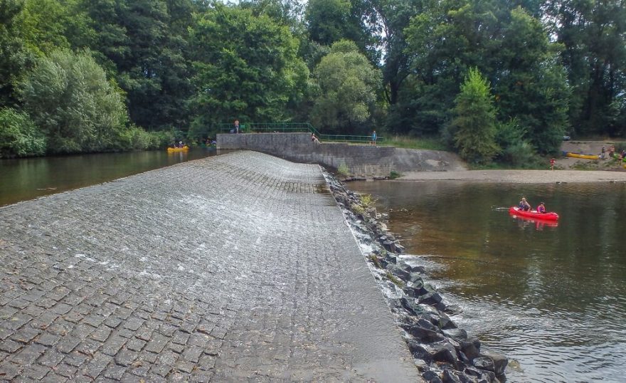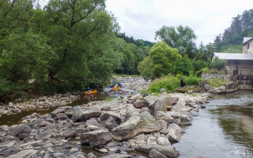 „Ty vole, co to je? Kde je voda,“ huláká na mě Franta. „No, kde asi, máš ji za jezem ty trubko!“ rozjařeně mu odpovídám. „Aha ty chytrej, tak se poď podívat.“ Přirazím se svojí Štikou ke břehu, koňadru zavážu za strom a hrnu se k jezu. Šlajsna je suchá, jez je suchej a všechna voda teče do elektrárny. „To není možný, vždyť je vody dost a má jít šlajsnou,“ divím se. „Nemají elektrárny nechávat něco i pro vodáky?“ říkám si už jen tak pro sebe. Taháme bagáž a lodě a vlečeme všechen náš vodáckej matroš 200 metrů po souši. To se o to nikdo nedokáže postarat, aby tu ta voda tekla?
