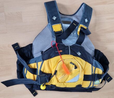 Prodám použitou vestu Palm Amp AV (BA150), kategorie 50N. Ideální na divokou vodu díky integrovanému quick release harnessu.