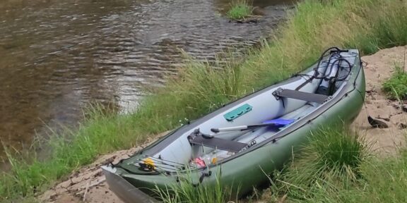 Použitá prodloužená nafukovací kanoe Rio s vylévacím rukávem v dobrém stavu, funkční, jedna profesionální záplata na spodní straně. Možno připevnit až 3 sedačky, nosnost 400 kg. Součástí výbavy nejsou pádla, pumpa a třetí sedačka.