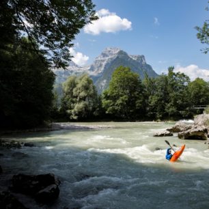 Pár záběrů k hraně prvního vodopádu, zvládnout trochu náročnější boof a už jsem v bazénu. Teď mě čeká nejvyšší skok. Ohlídám si zákeřnou roládu v nájezdu, počkám si na záběr a bum, přistávám na plocho do zpěněné vody. Okamžitě mě naplňuje pocit obrovské radosti z povedené lajny. Na kajaku je to stejné jako na kole: když se naučíš základy v dětství, už nikdy to nezapomeneš. Radost mi vydrží po zbytek dne.