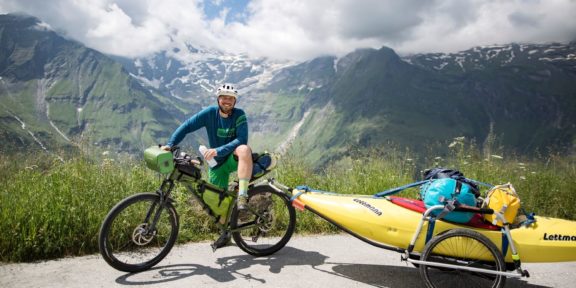 Už přes týden jsme na cestě s kajaky zapřaženými za koly. Vyrazili jsme z jihu Německa a naší první pádlovací zastávkou byl rakouský Lofer, kde jsme si užili populární Loferschlucht. Přes Kaiser Mountains jsme pokračovali až ke Großglockneru, kde jsme se dostali do nadmořské výšky 2 504 metrů. Sjeli jsme k Lienzu ve východním Tyrolsku, zapádlovali si na několika úsecích Iselu a na Defereggenbachu a potom šlapali přes Staller Sattel pass (2 052 m n. m.) do Merana v Itálii.