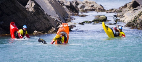 Druhý deň ráno sme sa zobudili do slnečného dňa, čo v Británii nie je príliš obvyklé. O druhej sme sa chystali na vodu, príliv mal vrcholiť o piatej. To som ale ešte netušila, aká cesta ma čaká. Aby sme sa na miesto stihli dostať včas, pádlovali sme asi pol hodiny rýchlym tempom, a čakal nás ešte stometrový traverz na druhú stranu. Keď som sa tam konečne dostala, bola som taká unavená, že som si ani nevedela predstaviť ako sa vrátim späť. Na mieste, kde mala byť vlna ešte nebolo nič, ale pár metrov odtiaľ bol valec v ktorom sa dalo vyhrať. Bol to veľmi zaujímavý valec, pulzujúci v desaťsekundových intervaloch – desať sekúnd vôbec nič a zrazu na ďalších desať sekúnd valec. Vlny sme sa síce v ten deň nedočkali, lebo príliv nebol dostatočne vysoký, zato sme videli tulene. Super zážitok, keď nečakane asi meter vedľa mňa vyskočil tuleň. A v lete je tu vraj dokonca možné vidieť aj delfíny. Vracali sme sa okolo šiestej. Netušila som, že more má takú obrovskú silu – príliv nás ťahal na otvorené more a navyše aj priamo do tzv. ,,konskej topánky“, čo je za horších podmienok veľmi nebezpečné miesto. Je tam totiž kameň, počas prílivu pod vodou, ktorý vytvára veľký vír, sťahujúci až tridsať metrov pod hladinu. Deb nám hovorila že sa tam potopili aj veľké lode. Keď som sa konečne dostala k brehu, nevládala som už ani vyniesť loď tých päťsto metrov do kempu.