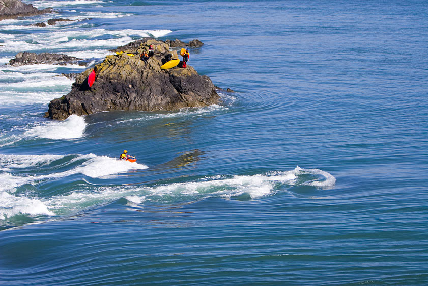 Druhý deň sme našťastie len fotili na pláži a útesoch fotky pre Adidas v nových kolekciách. Zabralo nám to celý deň takže na pádlovanie nedošlo. Tretí deň ráno sme skúsili surfovanie pri pláži a fakt som sa dobre bavila. Asi troj – štvormetrové vlny sa dali super surfovať ale často nás aj dobre šrotovali, čo bola najväčšia zábava – hlavne keď som objektom šrotingu nebola práve ja. Poobede sme o tretej vyrážali na vlnu, ale už pomalším tempom. Keď sme sa asi po trištvrte hodine konečne dostali na miesto, stretli sme tam veľa ďalších kajakárov, ktorí tiež čakali na príliv. Vlna sa už síce surfovať dala, nebolo to ale ešte úplne ono. Večer sme rozhodli, že ráno vstaneme o štvrtej a vyskúšame ranný príliv.