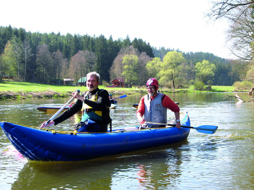 Před dvěma lety jsem si ještě sjel Čeňkárnu na singlu, ale už nemám potřebnou sílu. Navíc jsem pak čtvrt hodiny lezl z lodě, než jsem si narovnal nohy. Proto v poslední době jezdíme jen na nafukovačce Rio, lehčí řeky na laminátové C2. Laminátovou C1 – gutovku – jsem už dal do vodáckého muzea ve Zruči.