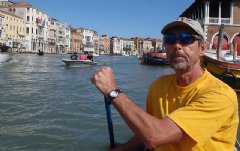 Zvenku je černá a uvnitř červená – přesně jako gondoly pravé. Jediné, na co si netroufám, je stání v lodi jako pravý gondoliér. To jsem s Radkou zkoušel naposledy loni na Zámecké Dyji při burčákové plavbě, kde jsem se chtěl vestoje vyčůrat bez přistání, protože se mi chtělo moc a kolem byly jen kopřivové břehy. Bohužel jsem nedomyslel Honzovu zlomyslnost, protože jeda kolem začal učit Radku vylehnutí na pádlo, aby držela balanc. Co jí však utajil, byla poloha listu na hladinu – nikoli hranou, nýbrž na plocho! Výsledek – letím po zádech do vody a trochu si čůrám do obličeje, loď převrácená a historický výrok mokré Radky, ledva vyplivla žábu: To musíš chcát zrovna tady?