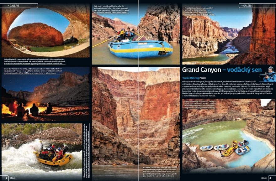 Přejít do galerieAle pojďme už časopis otevřít a zalistovat v něm. V editorialu se šéfredaktor Snížák zamýšlí nad přehradami v Česku, se kterými se (zatím tedy na papíře), v poslední době roztrhl pytel a vypadá to, že dojde i k několika realizacím. Za editorialem následuje galerie, kterou jsme tentokrát pojali velkolepě. Tomáš Mähring nám vybral své nejlepší snímky z výpravy skrz Grand Canyon řeky Colorado. Tento úsek je jistě snem mnoha vodáků a až uvidíte fotky od Toma, určitě si ten sen budete chtít brzy splnit.