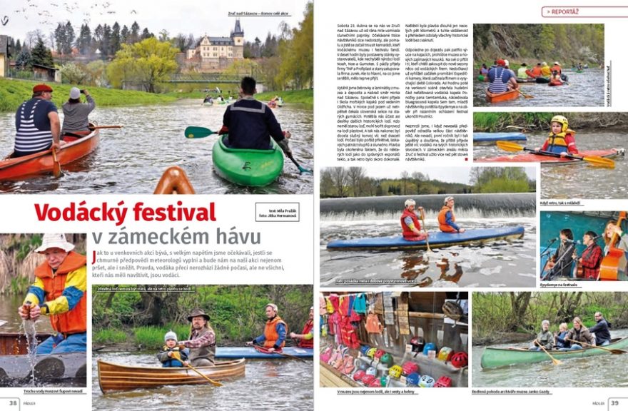 Druhou polovinu časopisu otevírá Jirka „Šakal“ Škaloud s pozváním na polské řeky Parsęta a Radew. Pokud hledáte méně známé řeky v Polsku, pak vás tento článek určitě uchvátí. Míla Pražák nám na dalších stranách popisuje Vodácký festival ve Zruči nad Sázavou, který zjara pořádal a přikládá krásné fotky z retro plavby, která částečně proběhla na exponátech z vodáckého muzea. Také vzpomínáte na časy, kdy se podobnými loděmi naše řeky jen hemžily?
