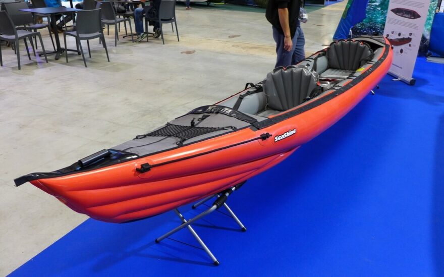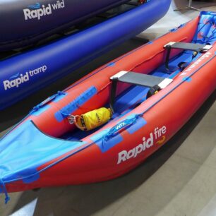 Z lodí WTX zde byly vystaveny nafukovací kánoe Rapid Wild a Rapid Tramp, které jsem už měli na recenzi, takže se o nic nebudu detailně rozepisovat. Jen zmíním, že Rapid Wild byl nominován na ocenění Paddle Sports Product of the Year Awards 2024 v kategorii Canoeing. A také tu byla vystavena dvojice již dříve představených raftů Alka ve velikostech 5 a 7, což značí maximální kapacitu dospělých osob. Rafty Alka jsou navrženy jako turistické (výrobce jim říká nafukovací pramice) a stejně jako kánoe WTX mají několik inovativních prvků, kupříkladu po kedru posuvné vnitřní válce nebo vylévací otvor pod zadní palubou, která zároveň slouží jako sedák pro zadáka (proto ty liché počty osob na jeden člun).