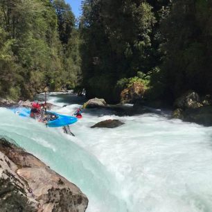 Když jsme opět nasedli na vodu, netrvalo dlouho a klidnou sekci vystřídal kamenitý katarakt se stromy – další přenáška. Mě celkem zmohla už ta první a navíc jsem potřebovala odpočinkový den před závody v Pucónu. Rozhodla jsem se tedy skončit ještě před zahájením hlavního úseku, kluci pokračovali sami a já sešla několik kilometrů po proudu k autu, že tam na ně počkám.