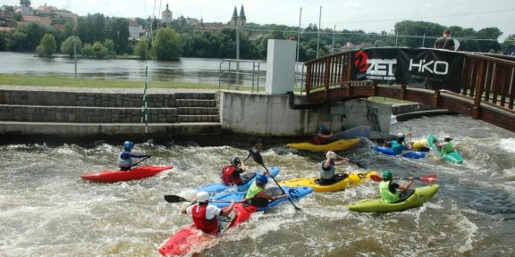 Body za sprint si rozdělily i holky a singly a po krátké pauze se všichni scházíme u plánku kanálu, abychom si poslechli, co smíme, co nesmíme, co můžeme a co musíme udělat pro to, abychom správně splnili slalomovou trať. Ta je postavená poměrně nestandartně, což způsobila právě velká voda v Labi, která zespoda zaplavovala ještě v pátek odpoledne velkou část kanálu, v sobotu už to bylo lepší, a tak zůstala dvě místa brankami zhuštěná, nějaká branka osamocená no a opět závěrečný sprint. Slalom se jel jen na jedno kolo, takže body do celkového hodnocení byly známy vždy po dojetí kategorie. V mužích se nejrychleji prokličkoval Honza Kolář, Vít Suchomel ujel všem juniorům, nejobratnějším singlířem byl Kuba Hrdlička a plný počet bodů za slalom ukořistila také Anna Sokolová. S poslední holčičkou skončila sobotní individuální část závodu a nastal čas na první týmovou disciplínu, kterou byl týmový slalom, neboli závod hlídek.