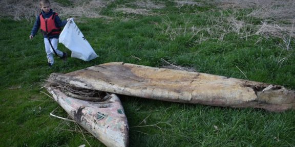 Dalším velkým úkolem byla stará laminátová loď, kterou se na místě podařilo roztrhat a odvézt v lodích. Odpad se na občerstvovacích zastávkách rovnou třídil a ve Zvíkovci se tak naplnily 2 kontejnery plasty a jeden plechovkami.