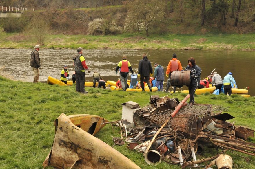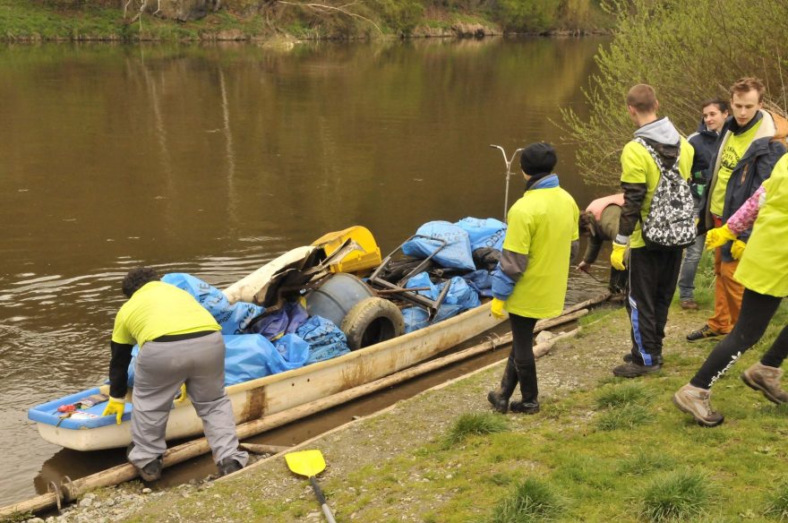 Při tradiční jarní akci vyrážejí dobrovolníci na lodích po vodě nebo pěšky po březích a sbírají vše, co tam nepatří. Ani letos neměli nouzi o plastové lahve, zbytky železa a igelitů, pneumatiky nebo torza židlí či porcelánových umyvadel. A to přesto, že se se řeka a její okolí uklízejí každý rok.