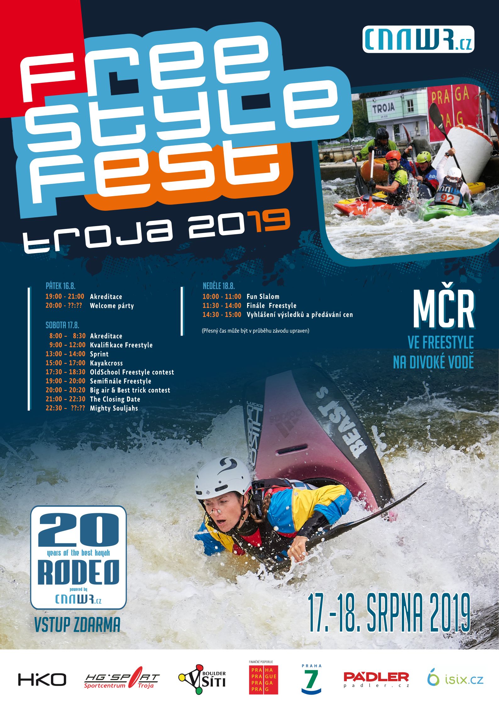 Ahoj kamarádi, chtěli bychom vás touto cestou pozvat na tradiční Freestyle Fest v Troji 16. – 18. 8. 2019. Jedná se letos o 20. ročník existence CNAWR, tedy organizace zaštiťující vodní freestyle v Čechách. To si zaslouží reflexi a hold všem, kteří se kdy organizace tohoto sportu u nás v minulosti účastnili. Toho jsme se pochopitelně zhostili s plným nasazením. Asi nejviditelnějším prvkem oslav bude vložený závod podle oldschoolových pravidel. K vidění tedy budou známé ikonické série cartwheelů a splitwheelů prováděné na starých osvědčených freestylových speciálech jako je třeba Prijon Delirious, nebo dalších, jejichž jména si myslíme, že už jsme zapomněli.