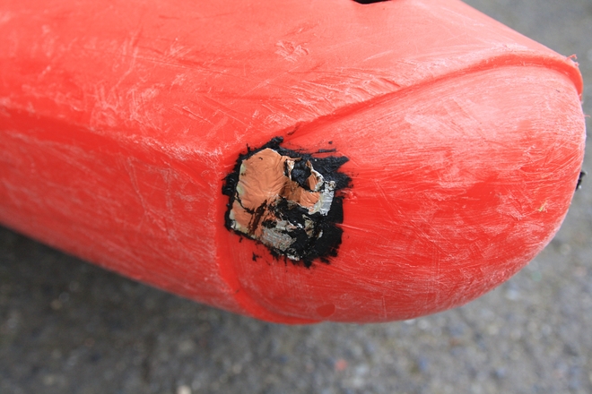 Anglicky Tar Tape jsem poprvé viděl používat ve Státech a následně v Chile. U nás jsem ji slyšel říkat také komínová nebo střešní páska. Jedna strana je obvykle hliníková a na druhé je přilnavý „asfalt”. Pravdou je, že pokud ji někam přilepíte, bude držet jako čert a dají se s ní vyspravit i relativně velké díry v lodích. Asfaltovka je o hodně odolnější než Tesa a opravdu se na ní dá něco odjet. K tomu, aby držela, je potřeba loď pořádně usušit a následně zahřát. Po přelepení se ještě vyplatí pásku znova pořádně nahřát třeba vařičem nebo alespoň zapalovačem.
