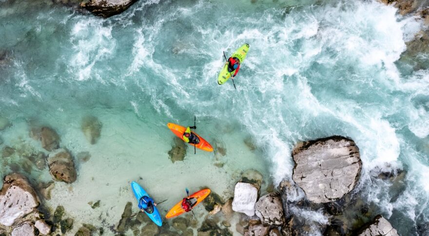 - Mírně pokročilí – vyrážíme na peřejnatější řeky a začínáme číst vodu. Trénujeme orientaci, techniku i základy záchrany. Často se podíváme do krásných alpských údolí – tady začíná skutečná vodácká intuice a láska k řece.