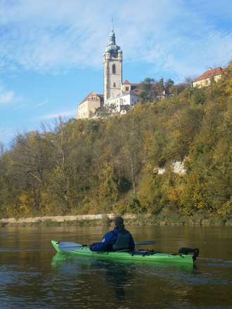 Nelze ještě nezmínit parník, plný německých turistů, který v cíli plavby právě kotvil nedaleko nás. Asi si dokážete představit, jaké pozdvižení na palubě způsobilo, když jsme se začali převlíkat z hydra a tu a tam na ně (opravdu nechtěně) vystrčili zadky. Nakonec vše dobře dopadlo a za nesmělého mávání z parníku jsme se vydali vrátit lodě do Tróje. Byl to nádherný výlet.