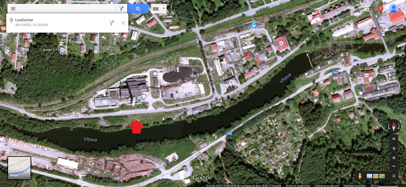 Kempovací místo u teplárny Loučovice (pro zvětšení obrázku klikněte)