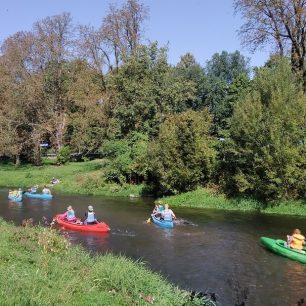 Jen nasedneme a trochu se uvelebíme v lodích, už jsme pryč z Kostelce a začíná příroda. Divoká Orlice se rozvlní v meandrech a jediné, co nám připomíná, že nejsme někde v úplné divočině, jsou sem tam elektrické dráty nebo malý mostek. Paráda! Sice to znamená, že není možné jen tak z řeky vystoupit a odejít, kde se člověku zlíbí, ale to snad nebude potřeba. Nějakých 18 kilásků do tábořiště v Týništi bychom měli do večera v pohodě zvládnout. Divoká Orlice nám v tom pomáhá proudem, který se zastavuje jen málokde.