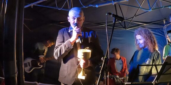Po ježdění na kanále luštil tajenku a pak už se pomalu začalo stmívat. Od večírku už nás dělil jen rozhovor, jehož prostřednictvím jsme prošli celou Ešusovu vodáckou historii. Závěrem dostal pohár, který mu musí závidět každý vodák. No uznejte…
