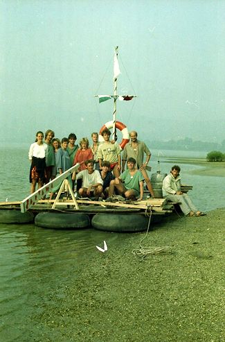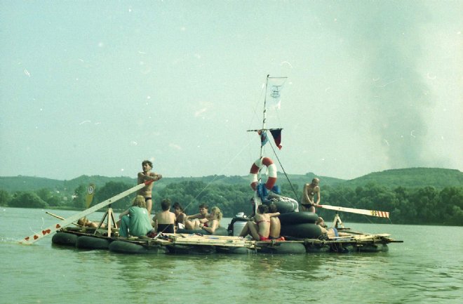 Na počátku druhé poloviny srpna 1989 jsme dorazili na místo srazu, loděnici nacházející se na Karloveském rameni, kousek nad tehdy rozestavěným mostem Mládežníků v Bratislavě. Když jsme začali vykládat materiál, nebyli překvapeni pouze cestovatelé a romantici z Brna, ale i místní vodáci. Nejprve jsme vyházeli lešeňové trubky, žabky a ráčny, pak velké množství starých pneumatik z náklaďáků a pumpy, pár prken, dvě vesla z pramic, záchranný kruh a spousty provazů. Nakonec šla jedna kanoe Jizera a dva sudy s hradeckou dvanáctkou. Na stavbě mostu jsme nalezli dostatečné množství kvalitních lešeňových podlážek a těsně před setměním byl náš vor pro 14 plavců hotov.