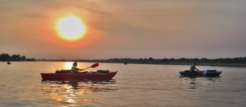 Je tu hodně leknínů, které brzdí naše čluny. Roste tu také hodně kotvic plovoucích. Tato rostlinka, která vypadá jako malý leknín, má pod listy ve vodě čtyřhranné oříšky, které chutnají jako kokos. Stačí vytáhnout jednu rostlinku a máte šest sladkých ořechů. Na konci jezera proplouváme lužním lesem, kde jsou nejstarší stromy v deltě. Vplouváme do ramena Svatý Jiří, kde také táboříme.