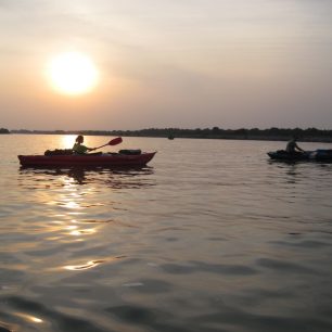 Vracíme se ke stanům a v dálce vidíme obrovskou záři. Hoří rákosí v oblasti, kam máme zítra plout. Vítr žene oheň do veliké výšky a vypadá to opravdu strašidelně.