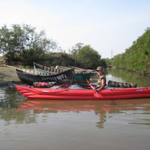 Odpoledne proplouváme Grišanem a dostáváme od místních obyvatel karbanátky, ovoce a zeleninu. Kolem projíždějí čluny s turisty, zastavují a fotí si nás. Ptají se nás, kolik nám je let, a když zjišťují, že třináct, tak tleskají. Pokračujeme dál kanálem Lung, který vypadá jako z amazonské džungle. Z vody koukají velké kořeny stromů a jsou tu různé zátoky a jezírka. Trháme si kořeny orobince, které, když se oloupou, mají bílou barvu a chuť jako pórek.