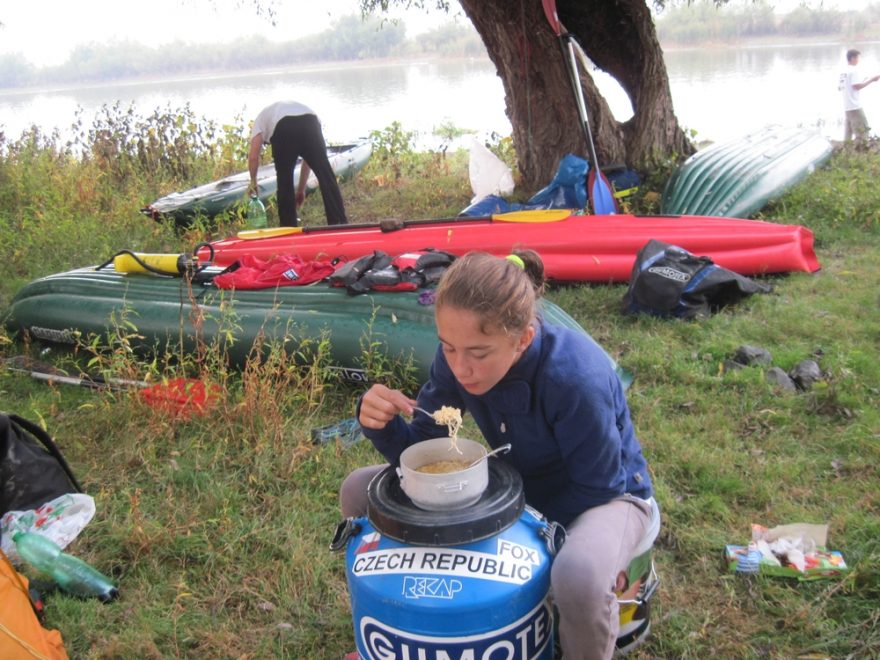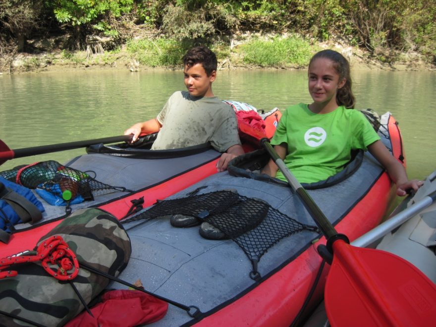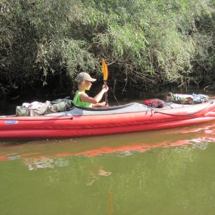 Nakládáme věci do kajaků a vyrážíme po řece. Jižní rameno svatý Jiří je nádherné, pádlujeme a děláme si srandu, kolik už jsme přejeli koupališť podobných tomu, na kterém jsme trénovali. Občas potkáváme lodě, které dělají pěkné vlny. Posádky lodí na nás mávají. Rameno sv. Jiří je dlouhé 112 km a odvádí 22 % dunajské vody do moře. Musela jsem se o Deltě „našrotit“ co nejvíce informací, protože musím podávat zprávy do mé základní školy.