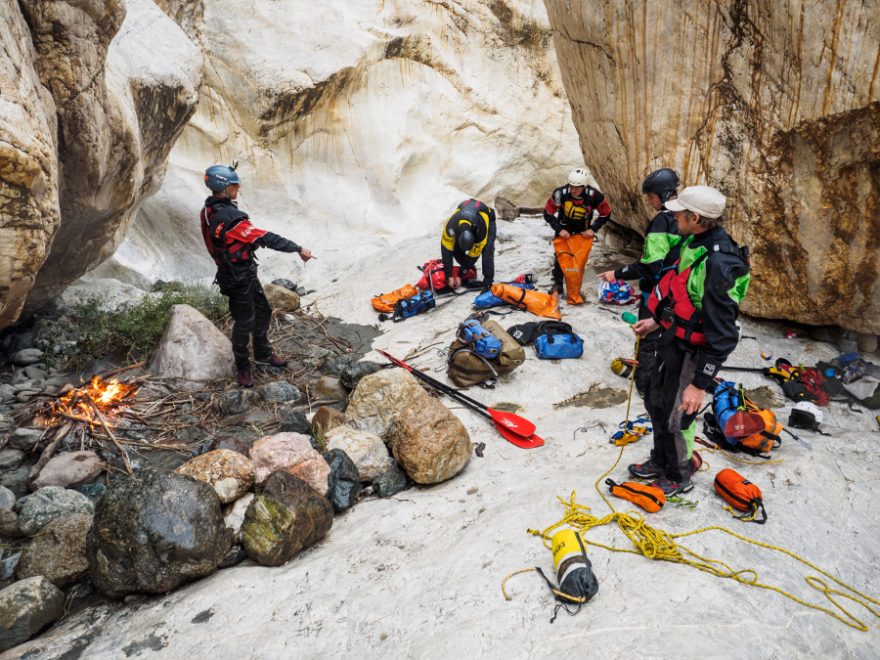 Nástupní místo je zároveň naším posledním místem v civilizaci. Odsud si vše povezeme v lodi. Plánujeme, že nám řeka zabere čtyři dny a čtyři dny půjdeme zpět. Nicméně vše záleží na okolnostech. Kolik bude vody v řece, kterou musíme vylézt z kaňonu, změny počasí atd.