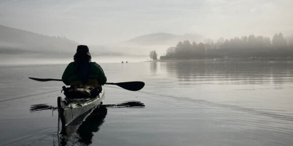 Tradiční seakajakářská akce Zimní Slapy bývá každý rok něčím pamětihodná, podle čeho se pak připomíná. „To bylo ten rok, jak…“ Tak předloni to byla vyloženě jarní nálada, loni zase ledy, kterými jsme se probourali s velkou námahou jen do půlky trasy. Letošní ročník zas bude asi nejvíc pamětihodný hustou, ale fotogenickou mlhou.