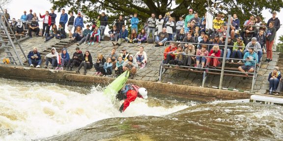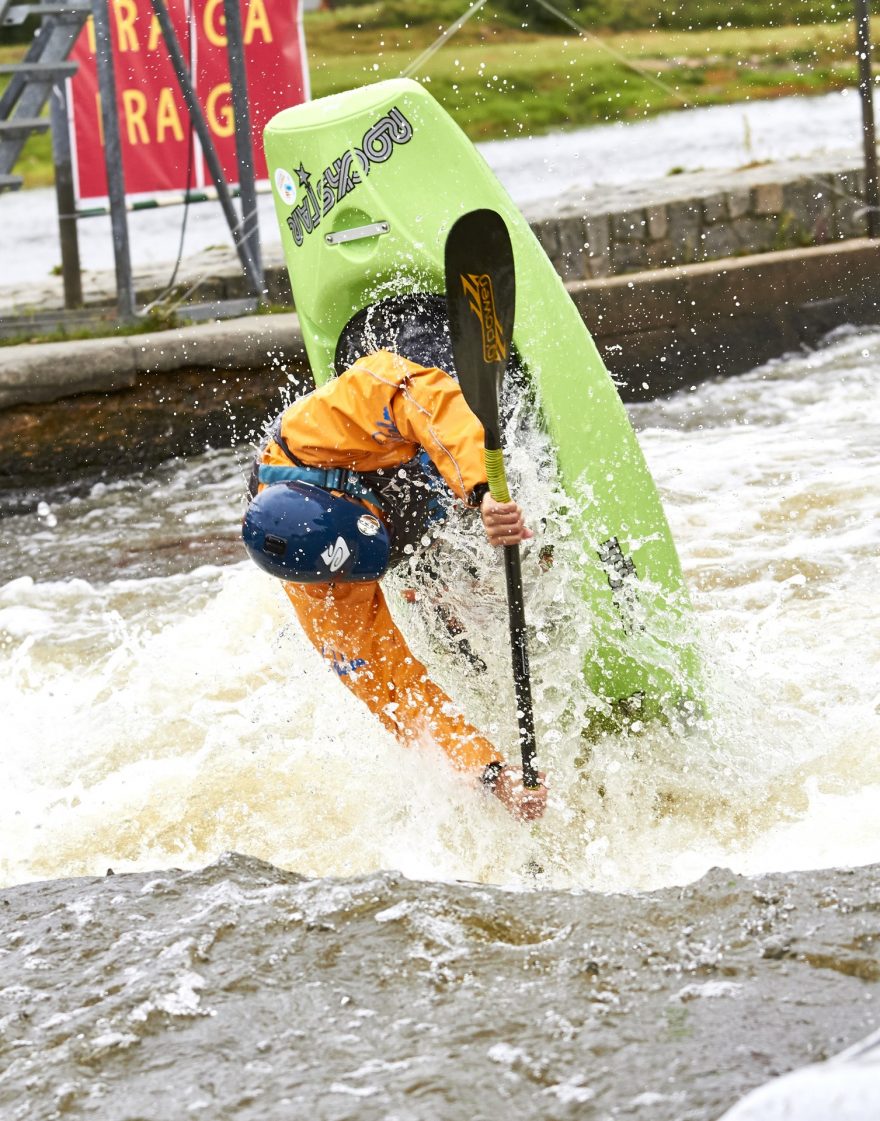 Ale zpátky k závodu. Muži odpoledne jedou semifinále, tzn. boj o postup mezi pět nejlepších kajakářů a možnost poprat se o závěrečné body Evropského poháru. Atmosféra je dost nabitá a pro rozhodčí není jednoduché tomu nepodlehnout. Přesto podávají profesionální výkon a vše probíhá v souladu s pravidly. Po semifinále se jede můj oblíbený Best Trick Contest, který vyhrává Bartosz Czauderna.