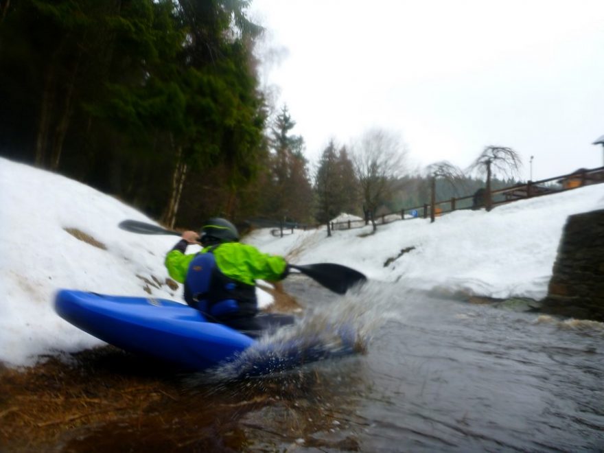 Galerie: Březnové pádlování na Schwarze Pockau aneb zpěněná voda řítící se mezi skalami i ztracené pádlo
