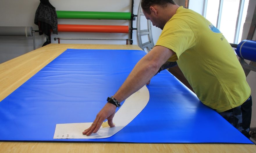Tady celý proces výroby začíná. Řezání dílů z PVC podle šablon.