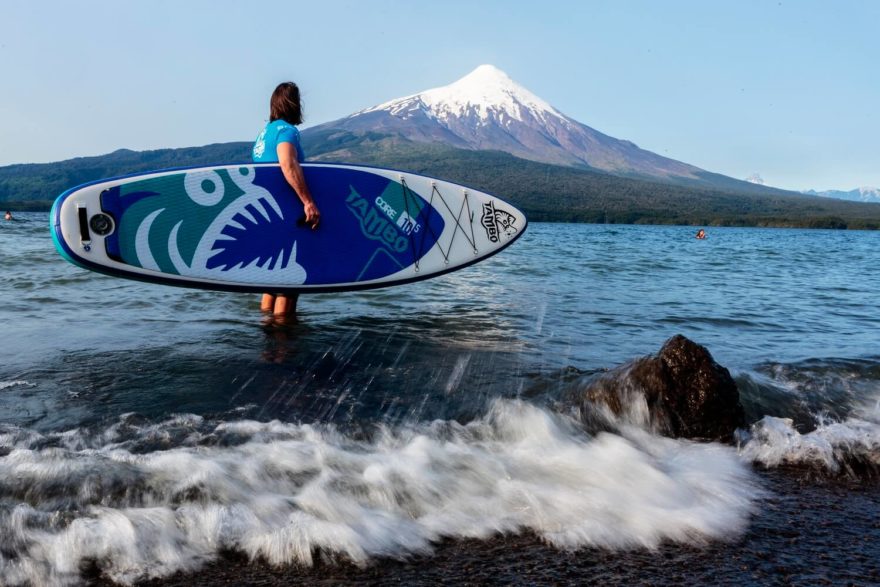 Zastávka u jezera skýtajícího výhledy na vulkán Osorno.