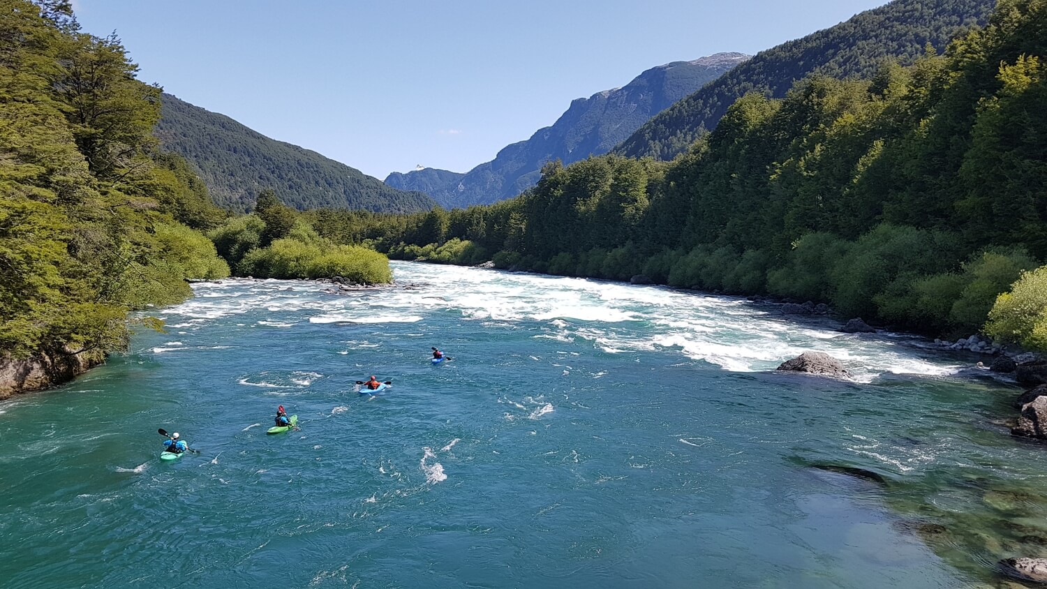 Naše partička na začátku sekce Bridge to bridge na Futaleufú.