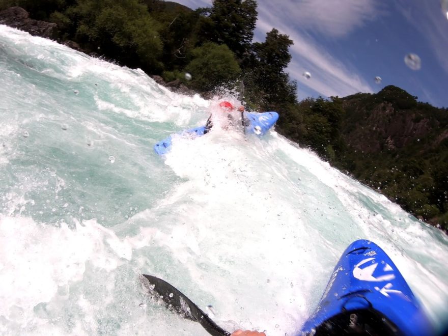 Bojujeme s peřejí Casa del Piedra na Futaleufú.
