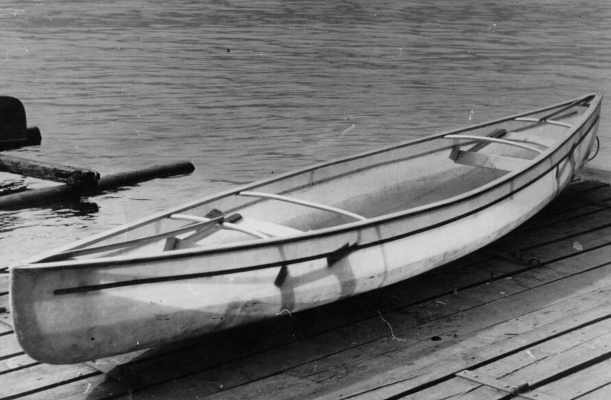 Prototyp první laminátové kánoe, Karel Novák a firma Plastika, 1955.